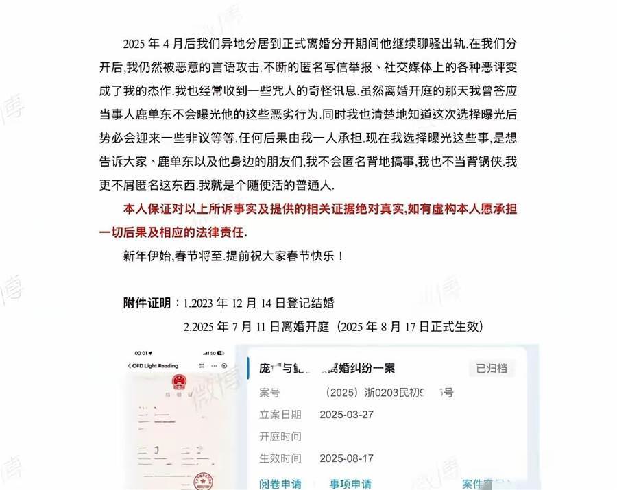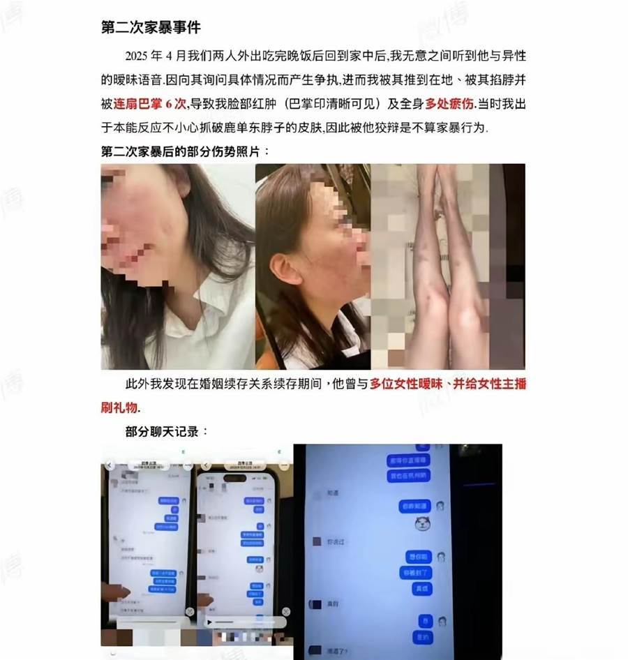 他的前妻直接發長文,附上傷情鑑定、司法記錄、聊天截圖、結婚證、離婚協議,把所有證據擺上檯面: