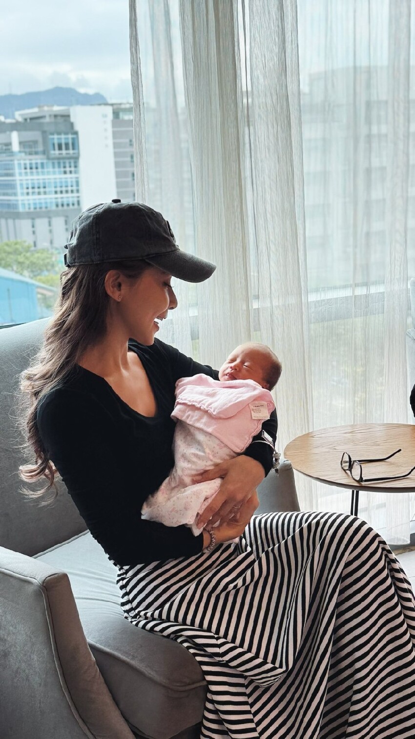 但從照片看來,吳婉君抱娃的姿勢相當熟練,畫面看起來就像新手媽媽一樣溫馨。