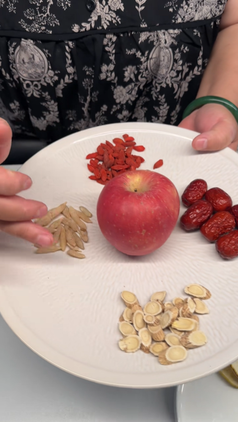 這款湯是春日基礎養生款,溫和滋補,專門緩解肝火旺盛引發的心煩、睡眠不穩,適合脾胃虛弱、容易焦慮的人群。蘋果煮熟后果膠軟化,能潤腸通便,排出體內代謝垃圾,減少內熱堆積;紅棗補中益氣、養血安神,中和蘋果的微涼,健脾養胃,從根源上改善情緒煩躁。