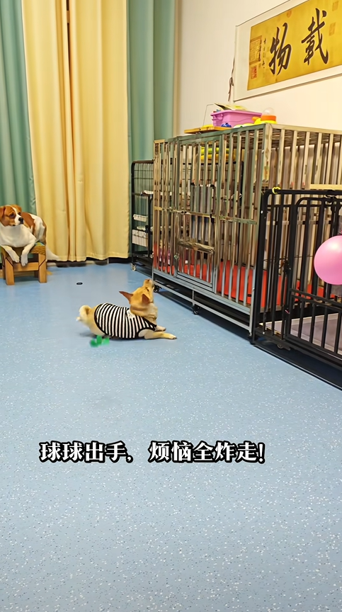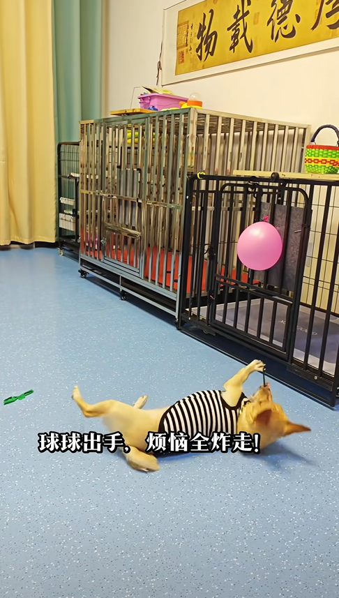 就這樣,在主人的指令與夸贊中,球球一次次臥倒、一次次向前、一次次戳破氣球,樂此不疲。它玩氣球的樣子,沒有一絲煩惱,沒有一點雜念,只專注于眼前的這一份小美好,每一次戳破氣球的瞬間,都像是一場小小的勝利。而那一聲聲清脆的氣球爆裂聲,也仿佛成了快樂的咒語,將所有的煩惱、憂愁、焦躁都盡數彈走,只留下純粹的快樂與溫馨。
