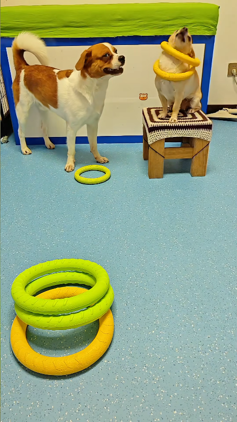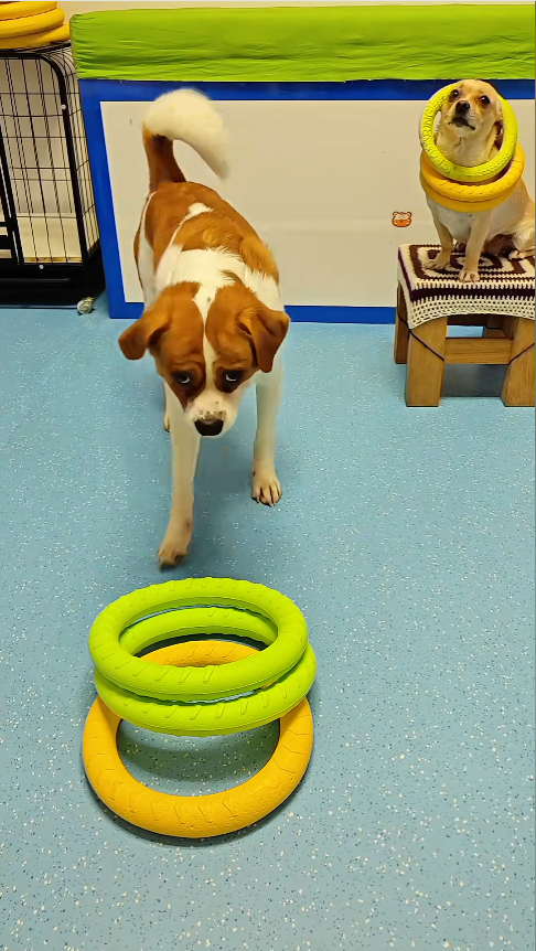 小狗套圈樂不停,萌趣瞬間治愈所有煩惱