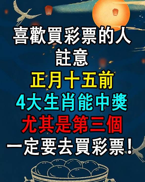 喜歡買彩票的人注意!正月十五前4大生肖能中獎,尤其是第三個,一定要去買彩票!