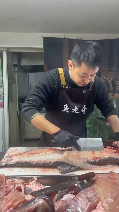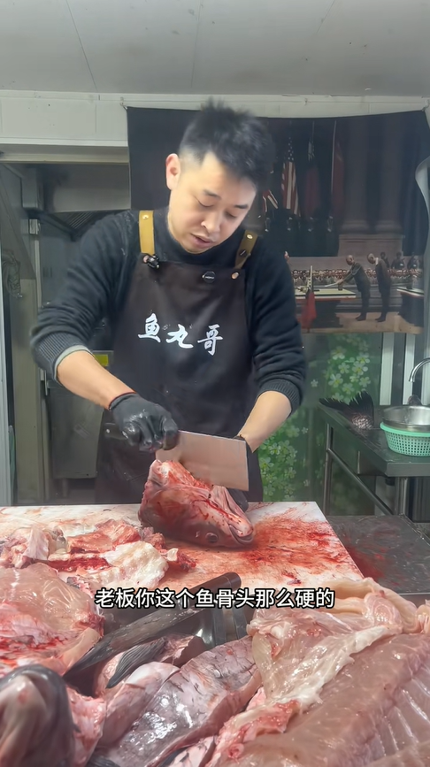 處理魚頭的過程,成了一場酣暢淋漓的刀工展示。魚丸哥手起刀落,將魚頭削得干干凈凈,骨頭上一點肉都不剩,還忍不住自我調侃:“這到底是我刀鋒利還是我刀工好?我也搞不懂。” 砍魚頭時,他數著刀數,一刀、兩刀…… 一直數到二十刀,一旁的顧客還打趣他 “魚骨頭那么硬,你這刀就這樣子砍 21 刀”,一來一回的互動,滿是市井的熱鬧。處理時發現魚頭上的小雜質,他也毫不避諱,直言那是 “魚屎”,這份真實不做作,讓看的人覺得格外親切。還有觀眾留言說 “看你殺魚好解壓”,魚丸哥也大方回應:“解壓就多看我視頻,工作壓力大也可以看我殺魚。” 沒想到一場簡單的殺魚過程,竟成了都市人釋放壓力的小出口,這平凡的市井日常,藏著最治愈的溫柔。