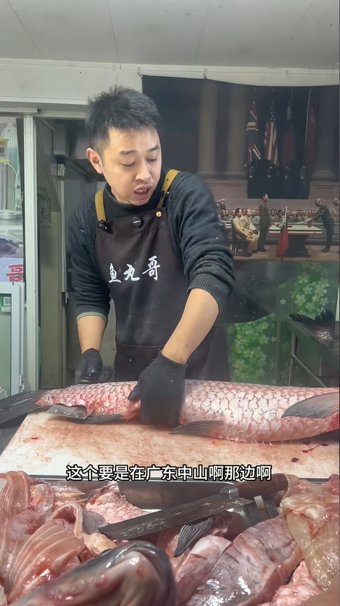 話音剛落,攤位前的熟客阿姨便上前選購,魚丸哥立刻打起精神,麻利地應著:“開工,阿姨要個大魚頭對不對?馬上給你搞滋溜。” 手上的動作絲毫不停,一邊處理食材,一邊還打趣自己,說如今削里脊肉的水平已經 “登峰造極”,那份市井攤主的爽朗與自信,隔著屏幕都能感受到。他還賣了個關子,讓鏡頭前的觀眾猜猜這碩大的魚頭賣給阿姨多少錢,笑著說 “你們永遠都猜不到”,瞬間讓這場日常的食材處理,多了幾分趣味。