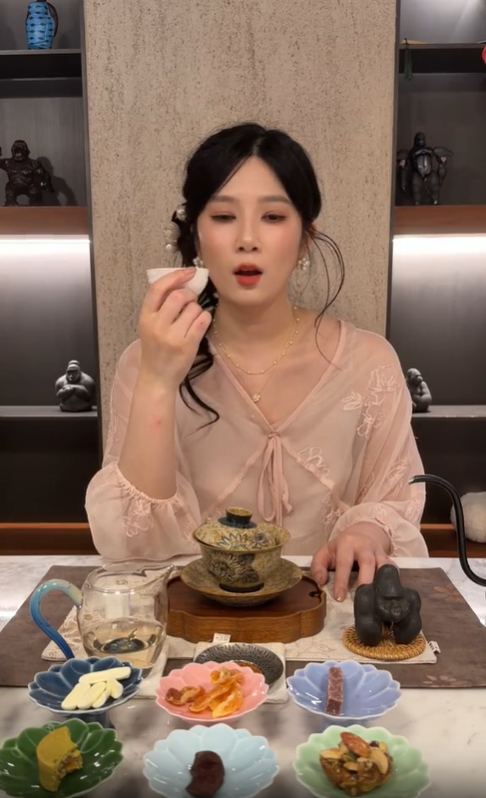本想安安靜靜為大家展示泡茶的過程,可身旁擺著的小茶點實在誘人,終究沒忍住,趁沒人注意,悄悄拿起一塊嘗了起來,入口的香甜瞬間在舌尖散開,好吃到忍不住再嘗一口,心里想著再吃一口又何妨,這份小小的貪吃,也為雅致的泡茶時光,添了幾分可愛的煙火氣。